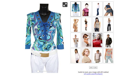 In this example several images from different location are passed to the $.axZm.thumbGallery over "zoomData" option. The plugin generates a grid of thumbs next to AJAX-ZOOM player instantly. It is also possible to load images from a folder. When clicked on the thumbs images in the player are switched to the selection.