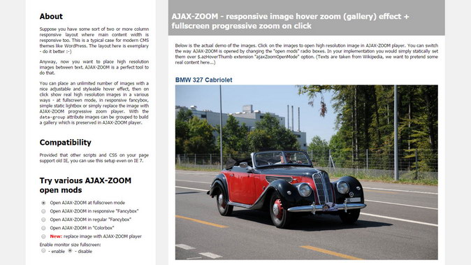 Below is the actual demo of the images. Click on the images to open high resolution image in AJAX-ZOOM player. You can switch the way AJAX-ZOOM is opened by changing the "open mods" radio boxes. In your implementation you would simply statically set them over $.azHoverThumb extension "ajaxZoomOpenMode" option. (Texts are taken from Wikipedia, we want to pretend some real content here...)
